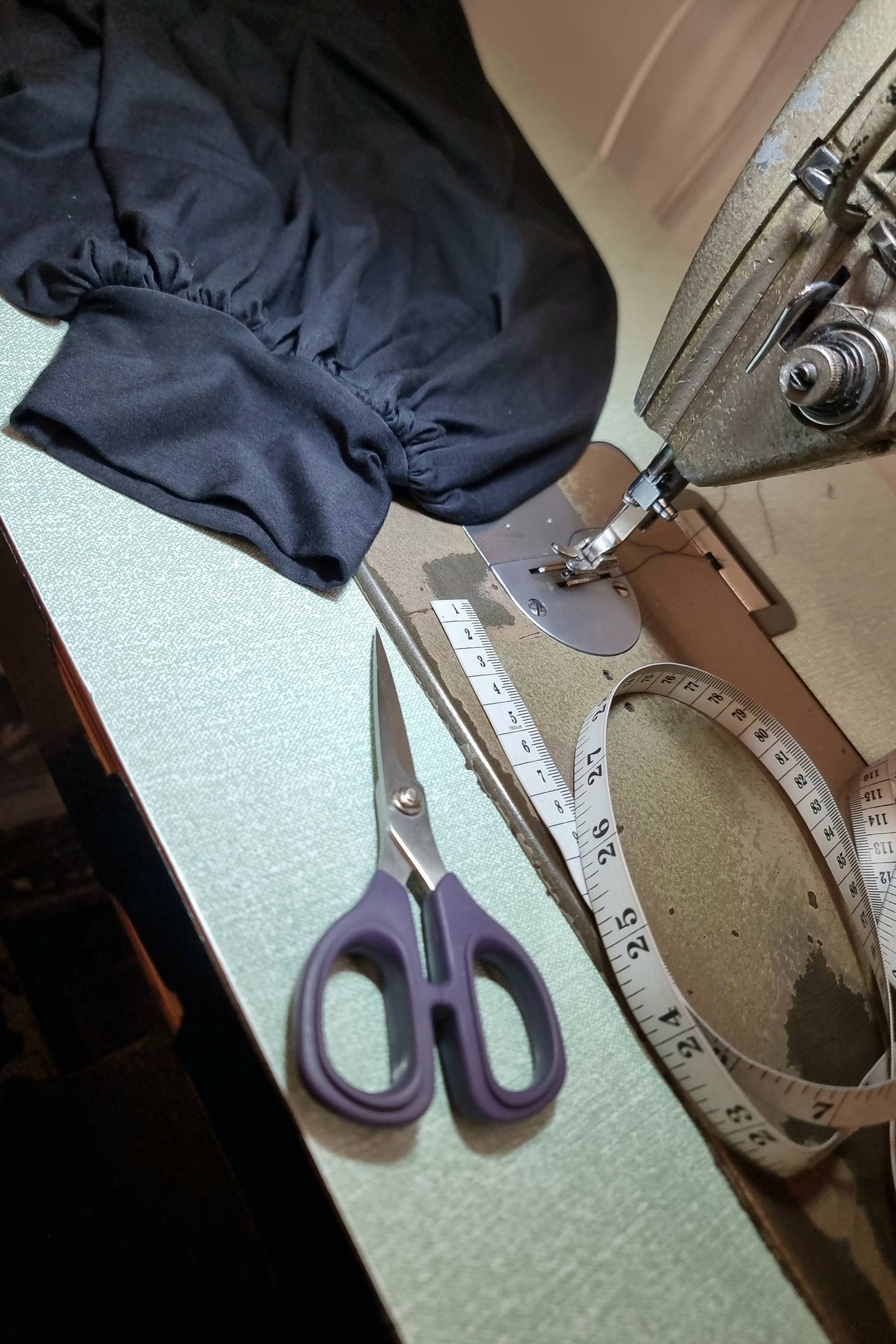Fabric: Deadstock lightweight black stretch jersey (polyester/spandex)