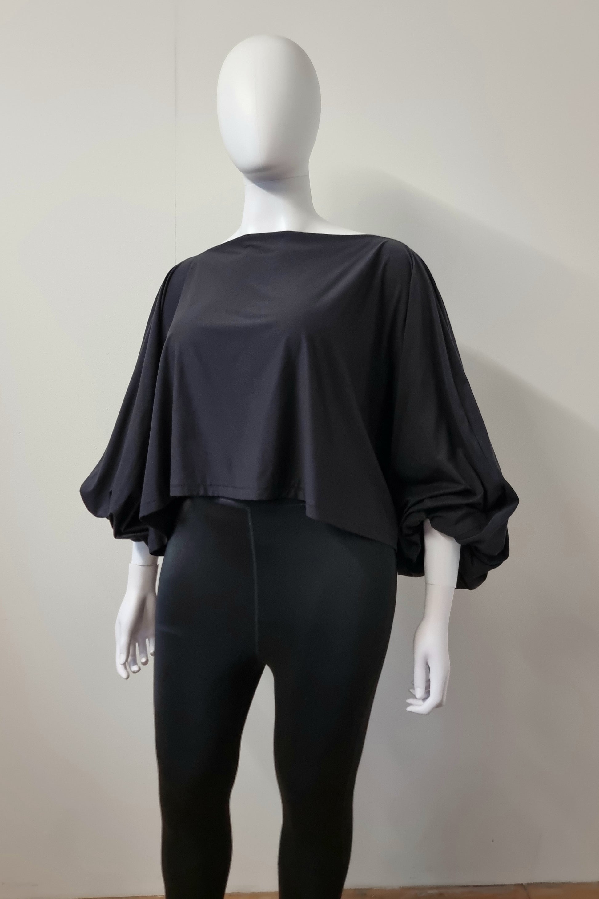 Fit: Cropped draped jumper with a balloon-draped sleeve and fitted cuff