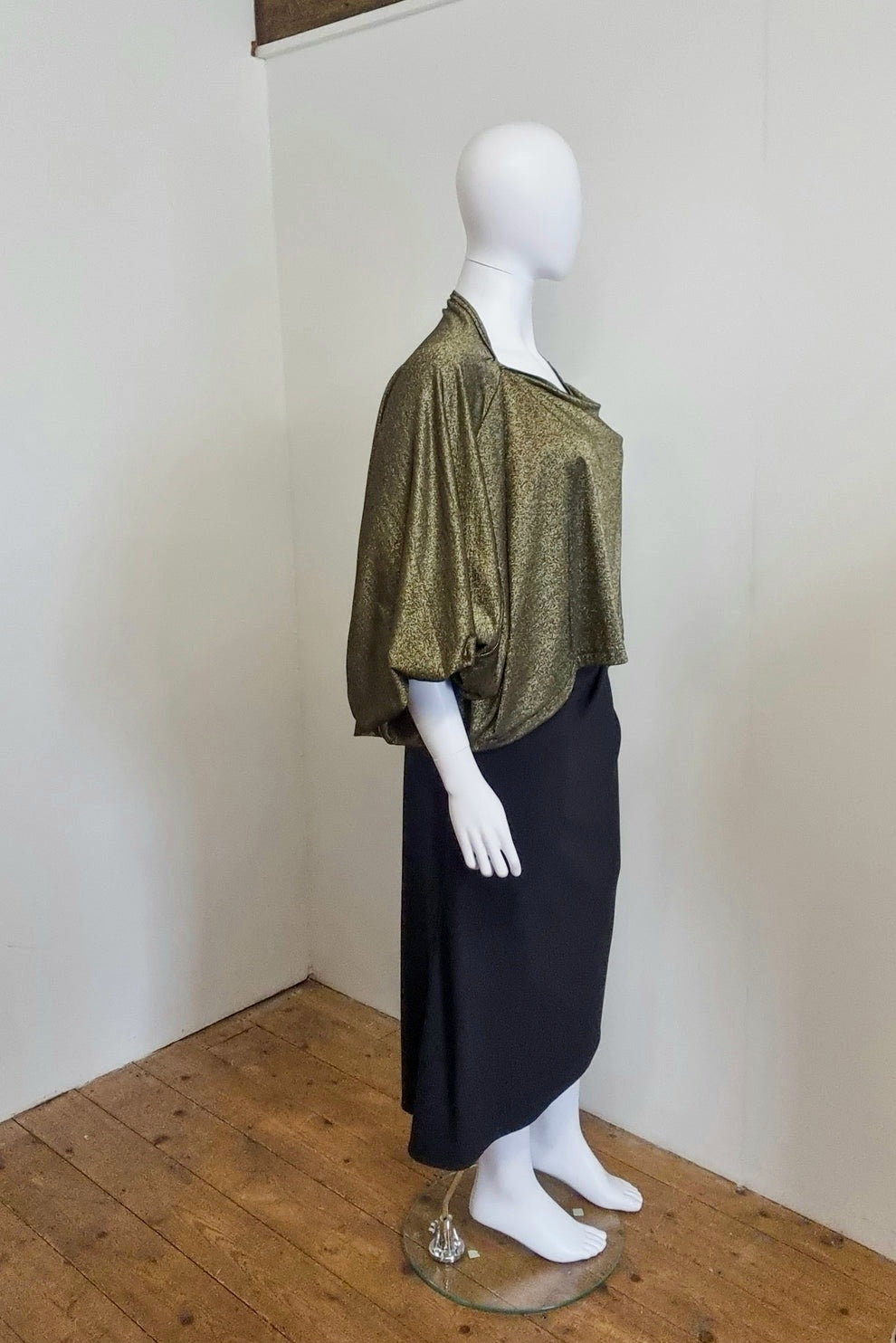 Fabric: Deadstock gold/bronze metallic stretch knit (polyester/spandex)