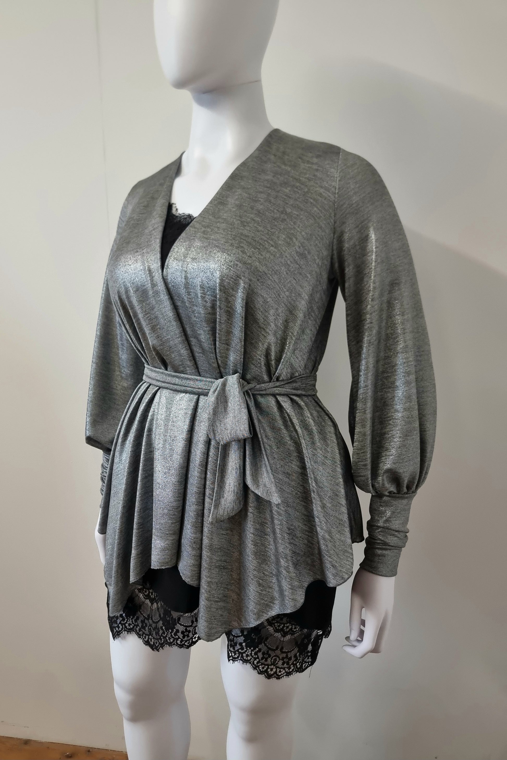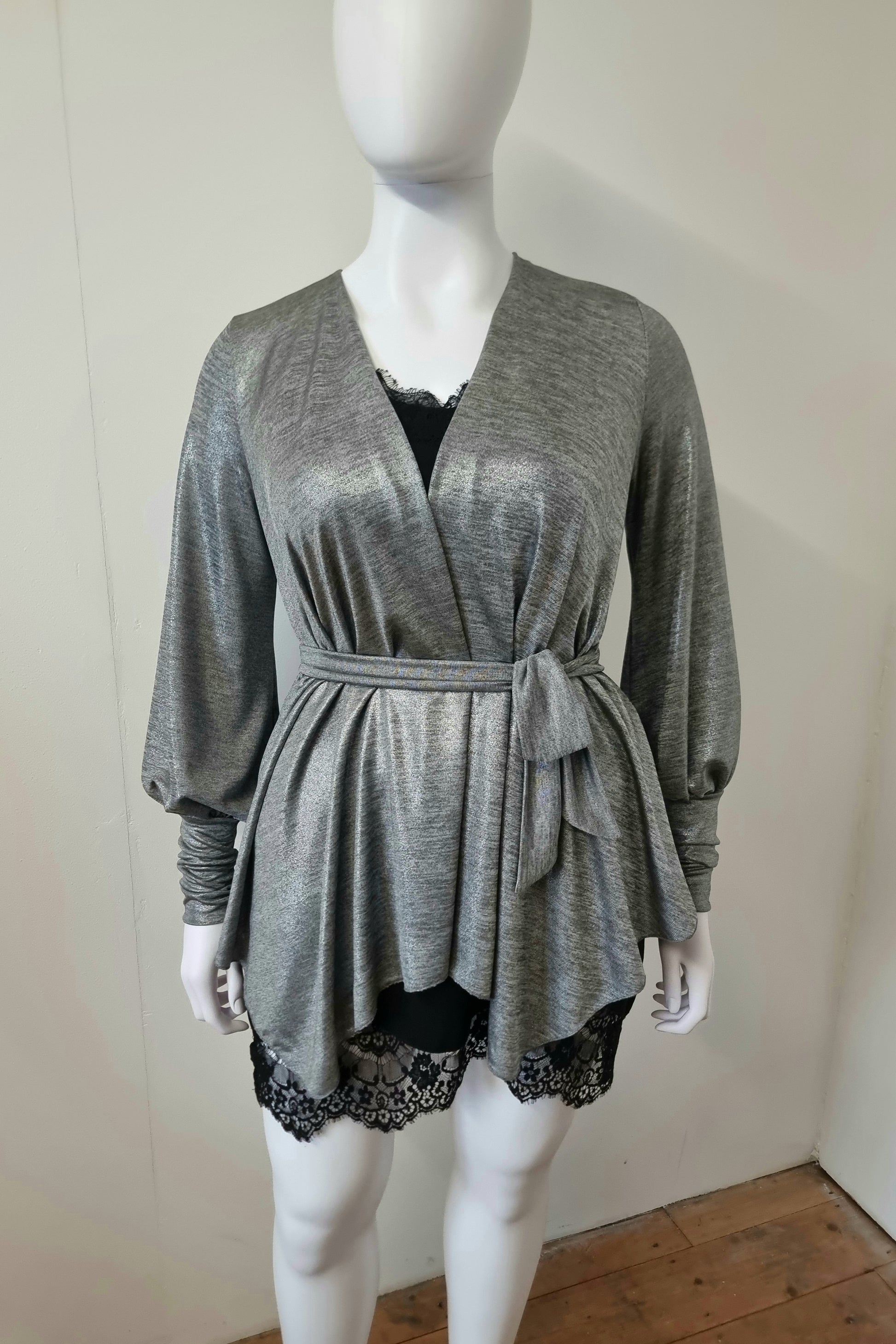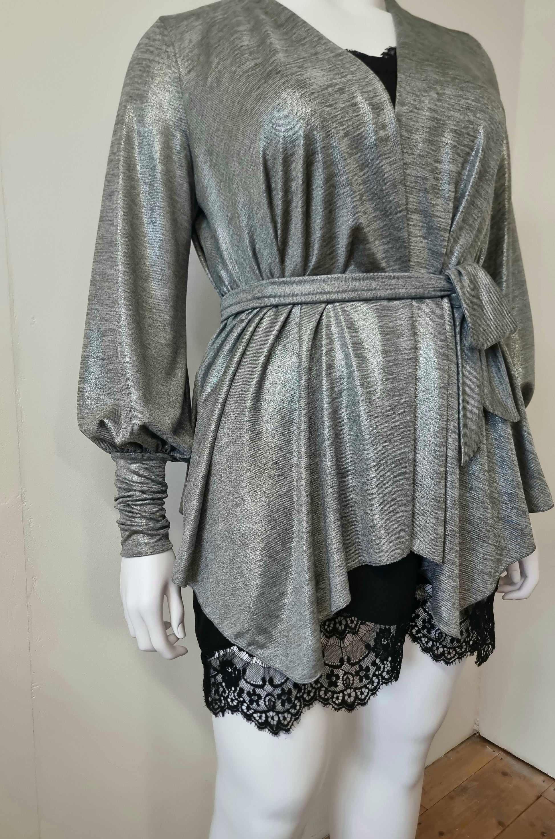 Fabric: Deadstock silver metallic stretch knit (polyester/spandex)