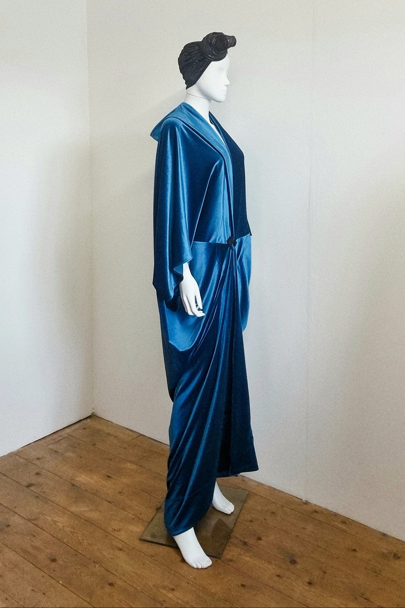 Inspired by traditional kimono silhouettes, this piece is all about drama and intention. Made from a rich stretch velvet, it can be worn various ways.
