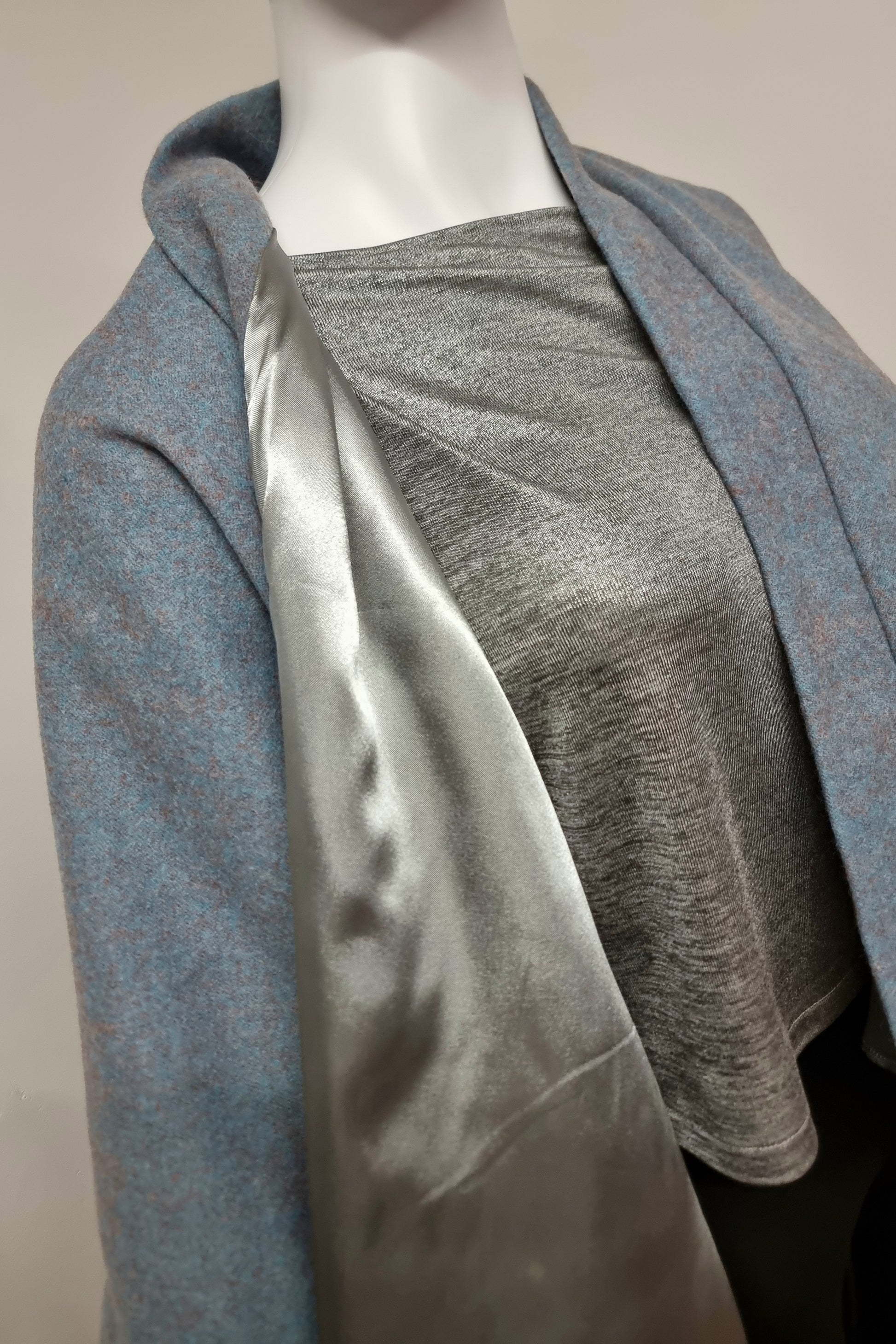 Fabric: Deadstock sky blue and pink blended boiled wool with a silky silver lining (100% wool & polyester)