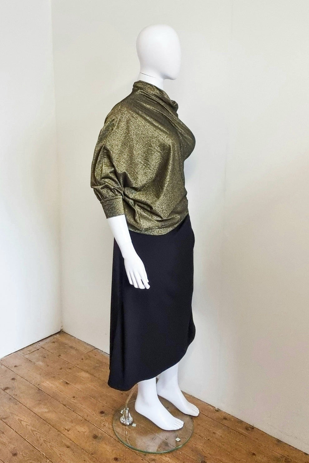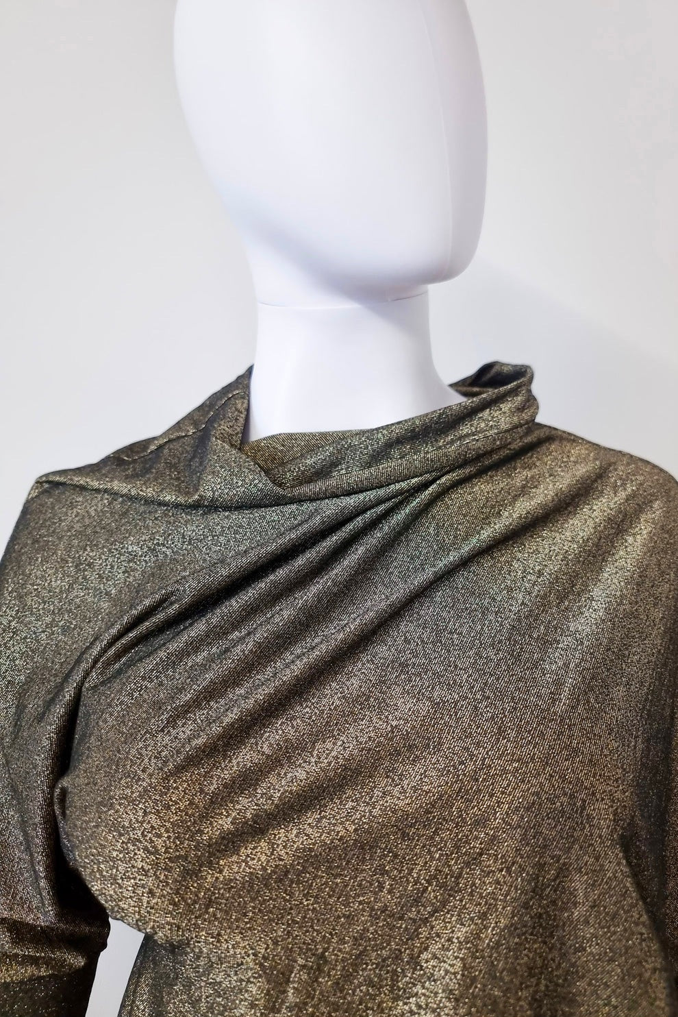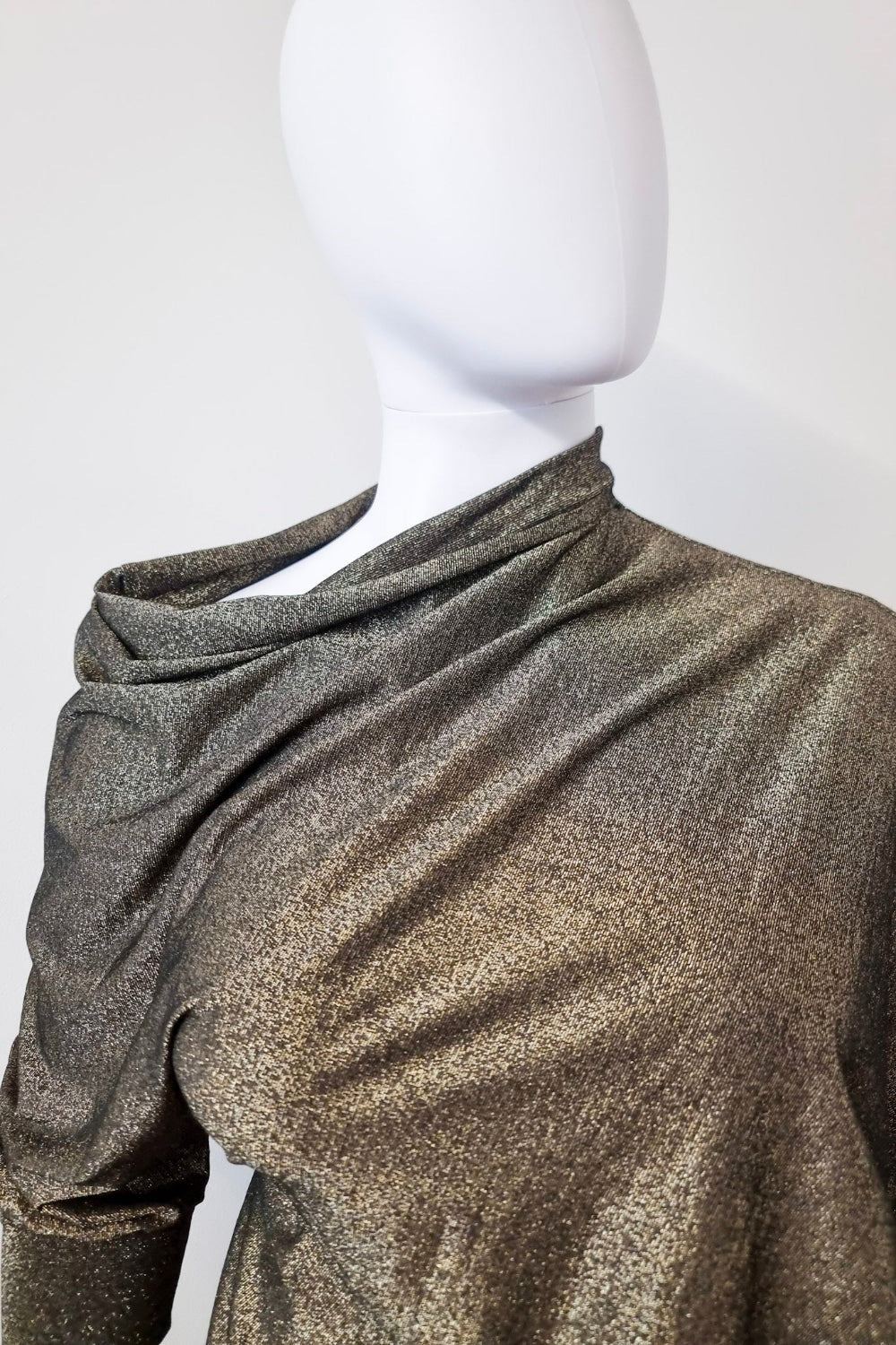 Fabric: Deadstock gold/bronze metallic stretch knit (polyester/spandex)