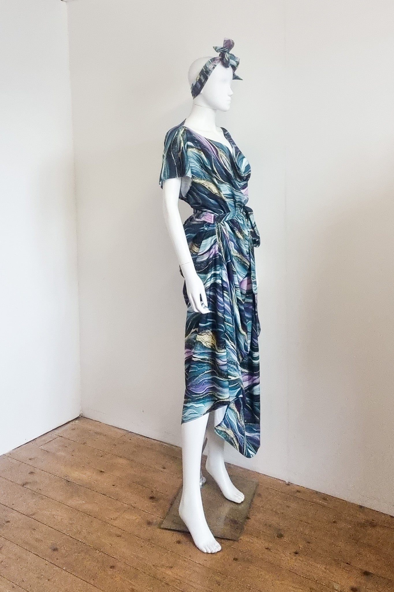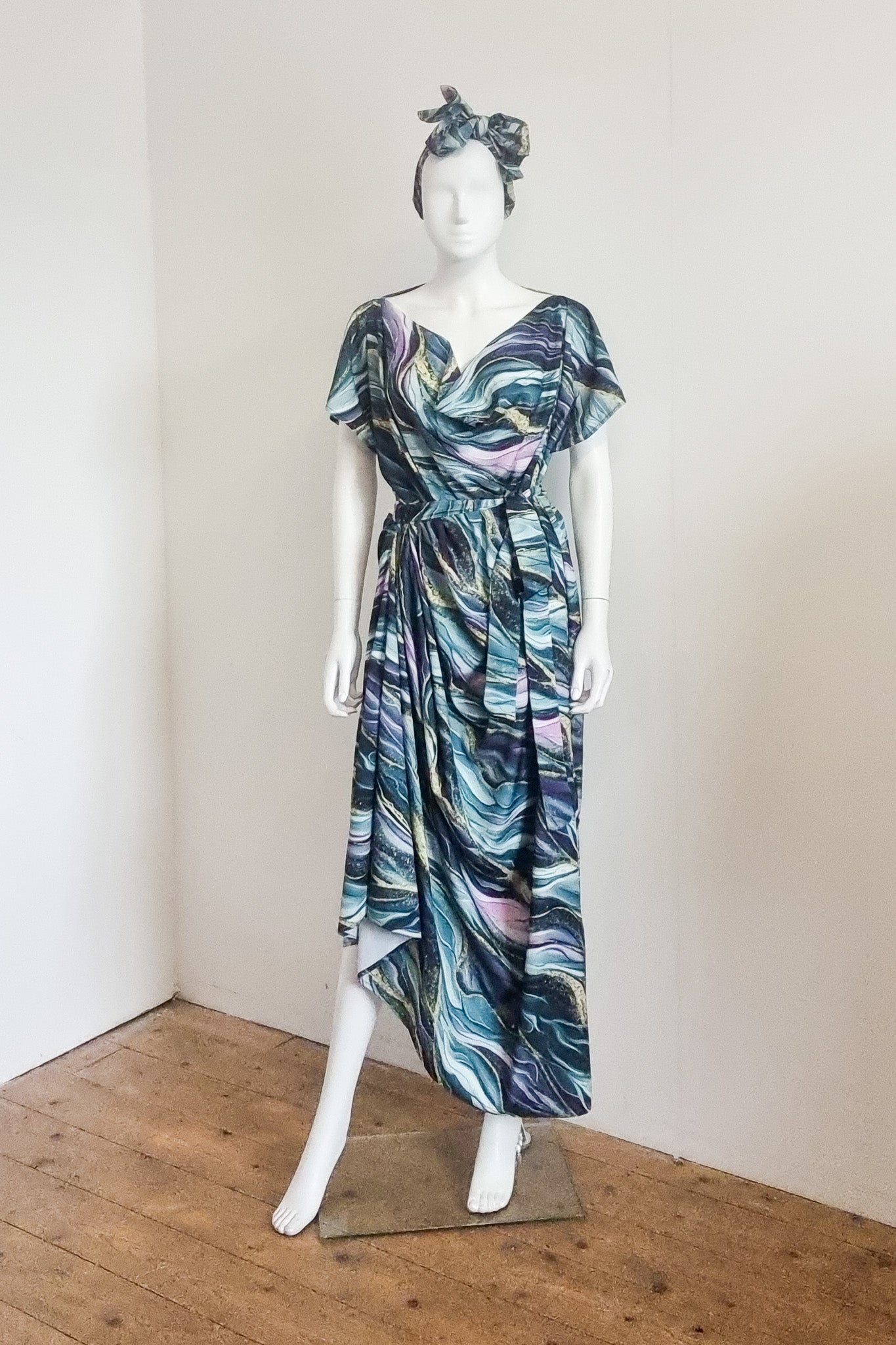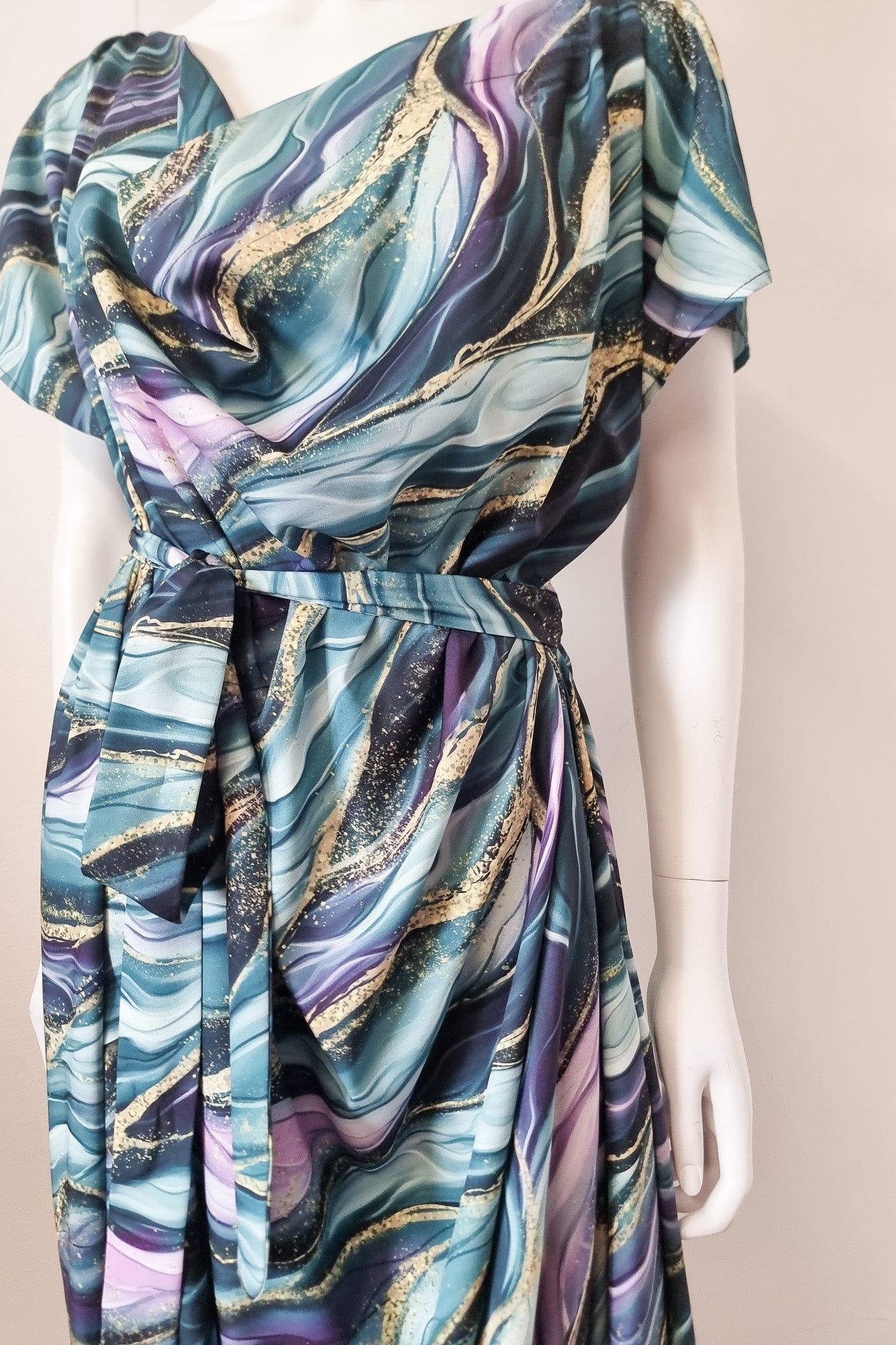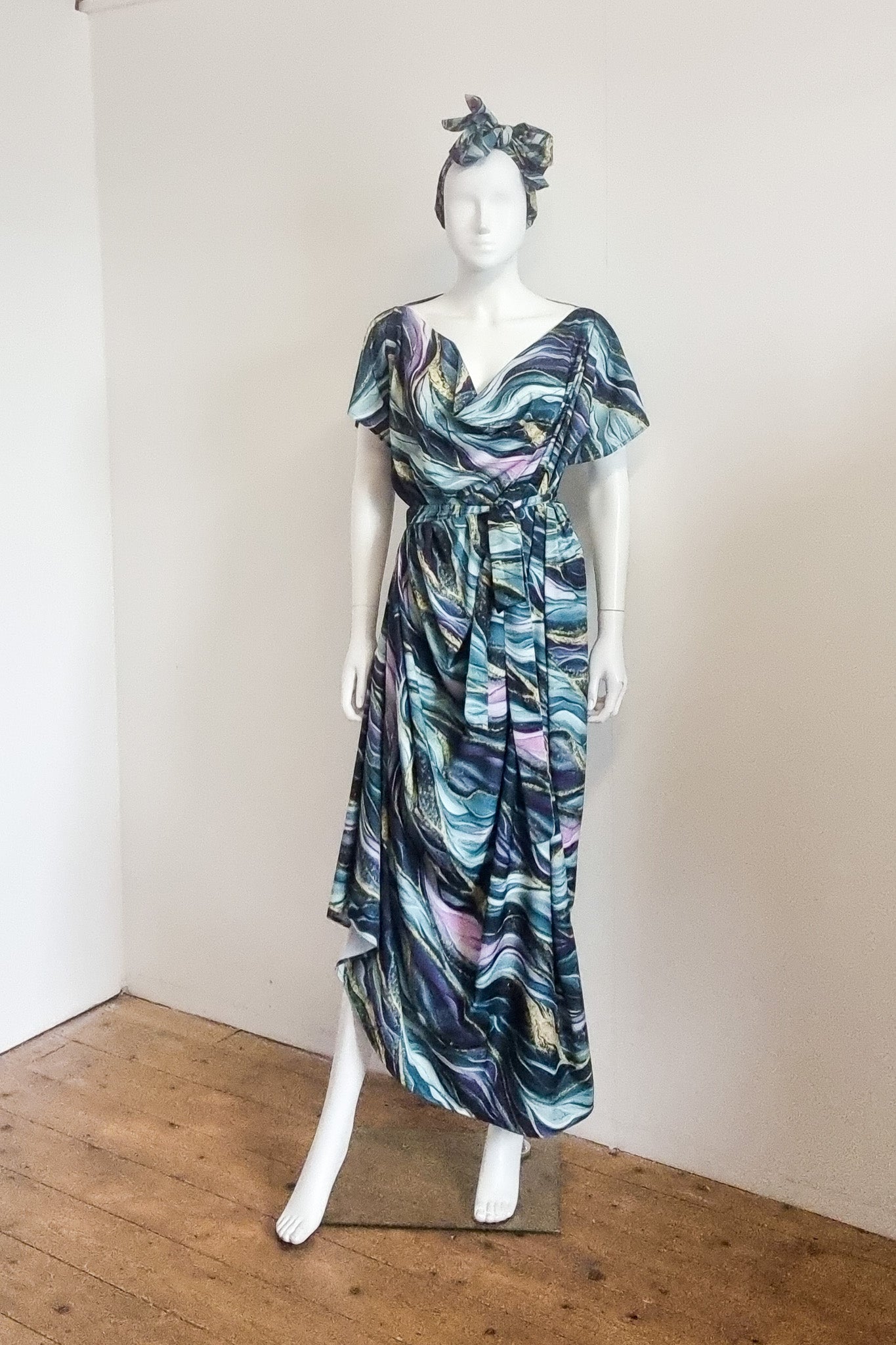 This striking multi-coloured marble print truly comes to life once made up—it shimmers and shifts with every movement.