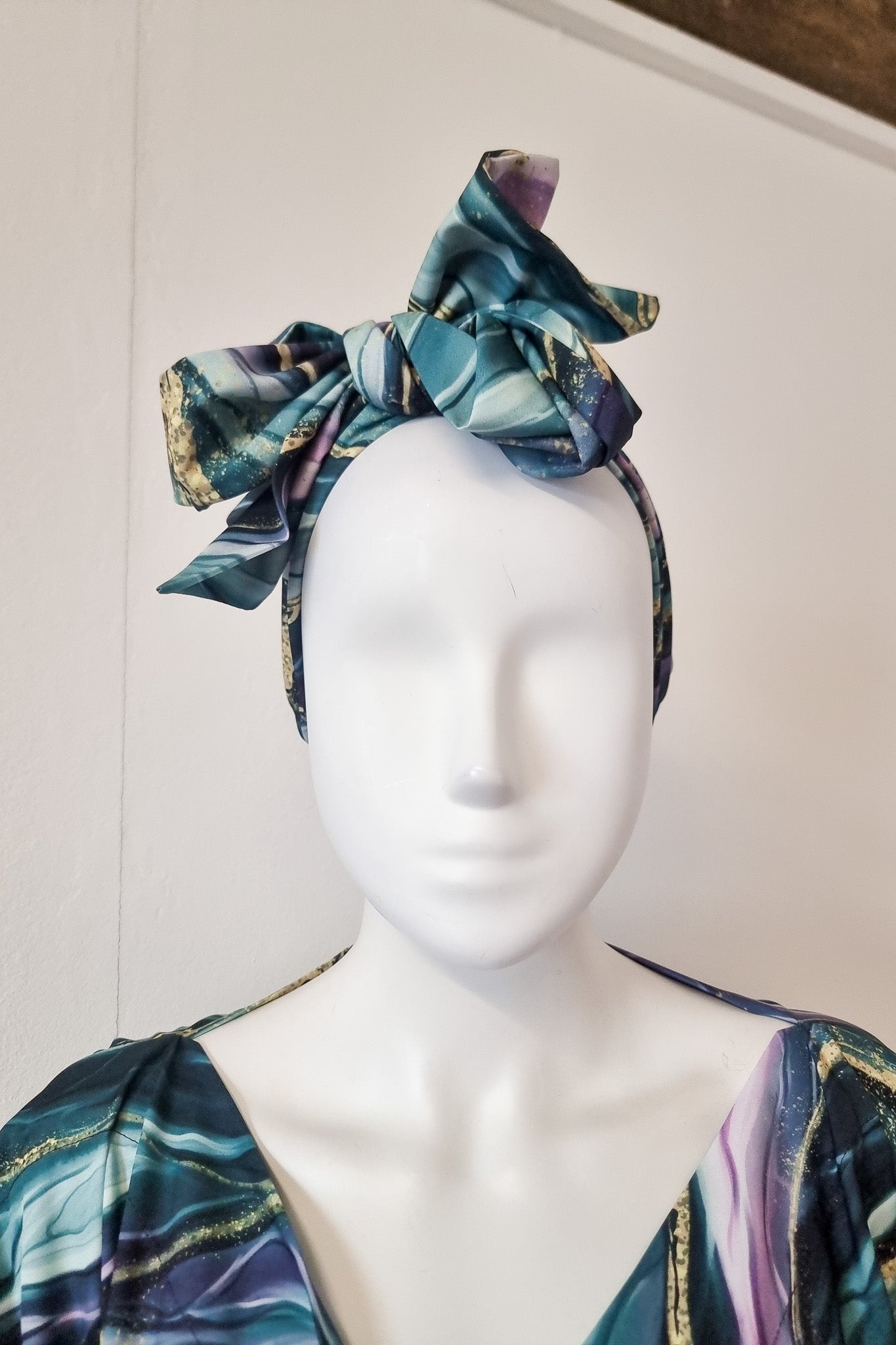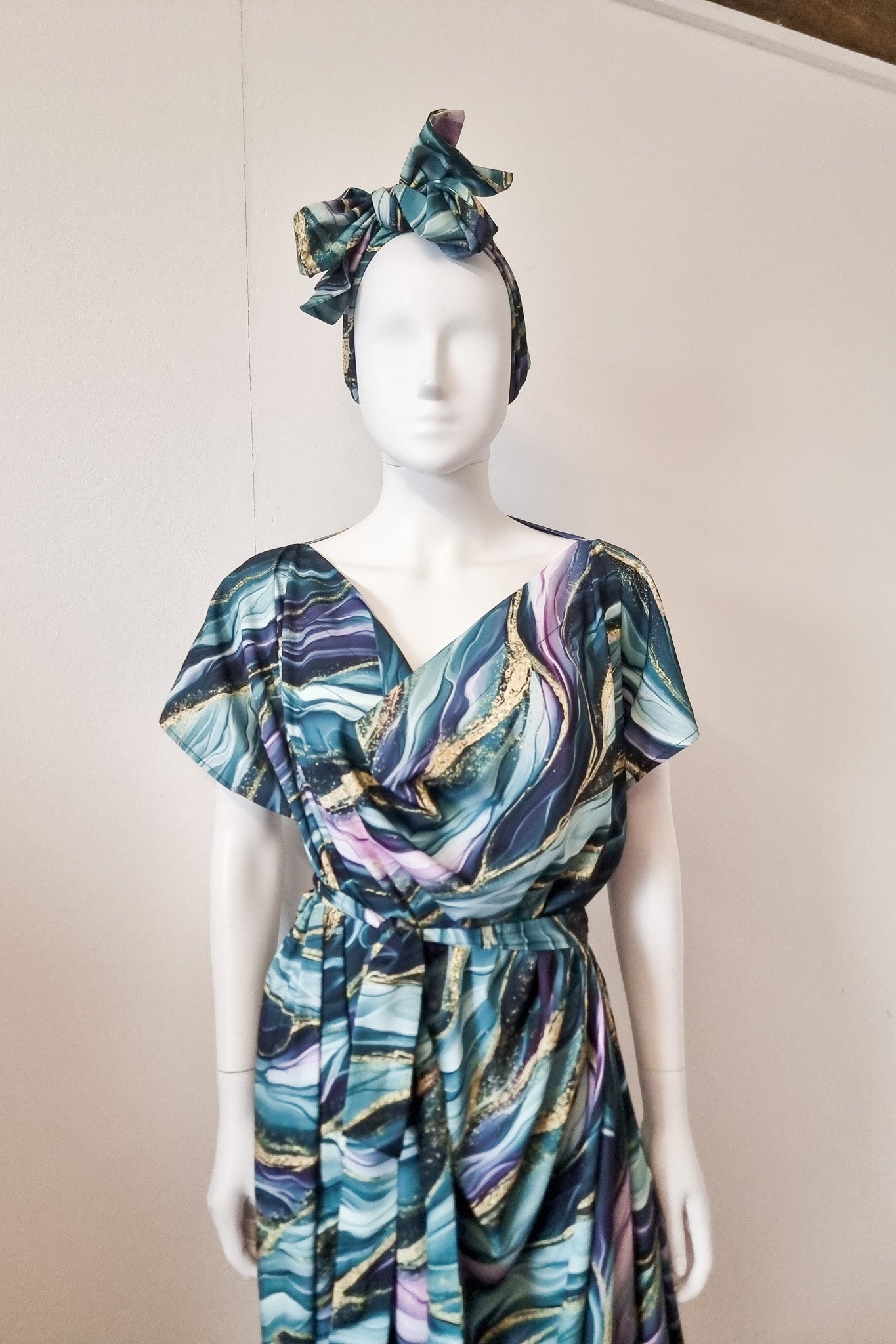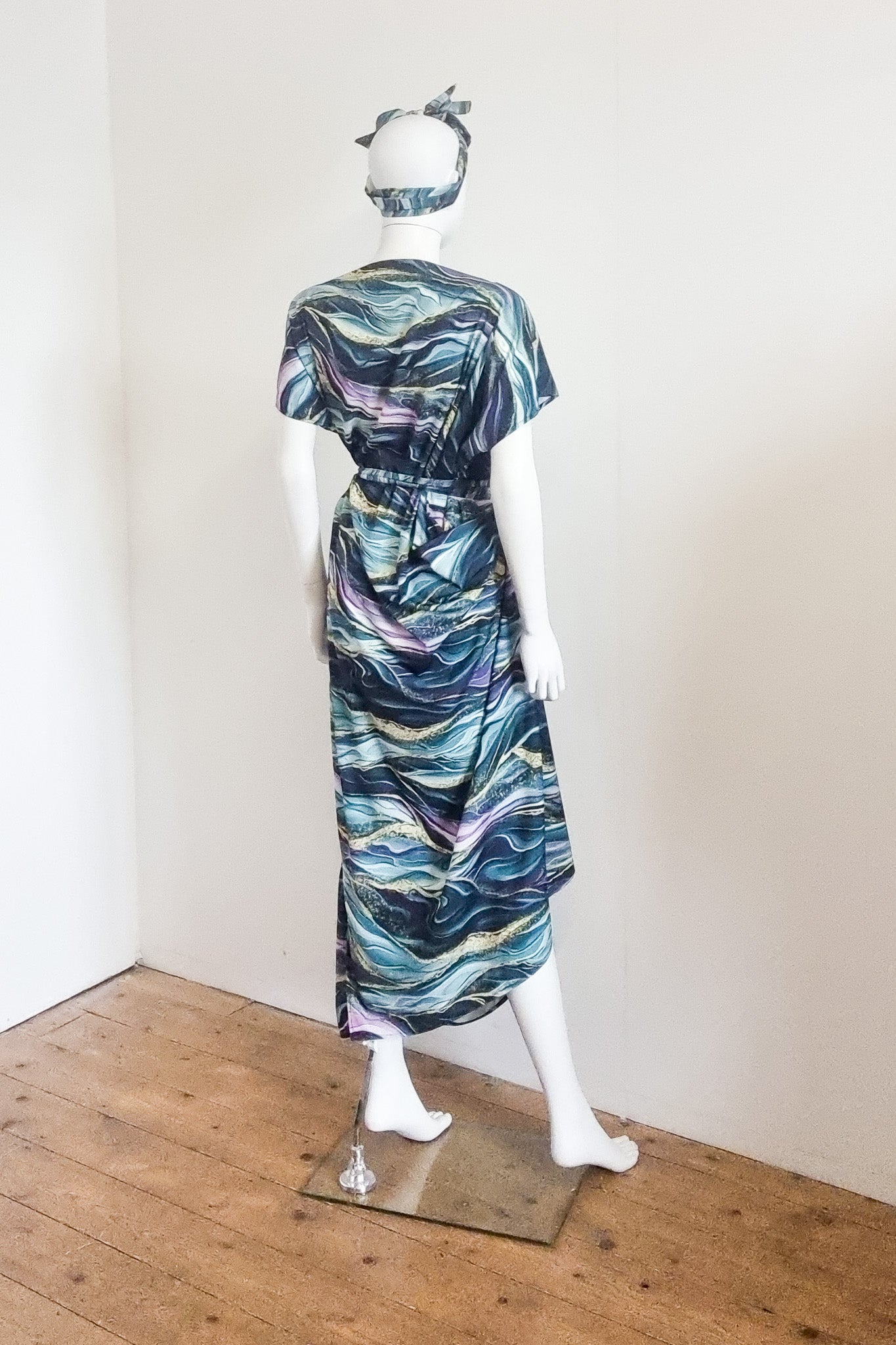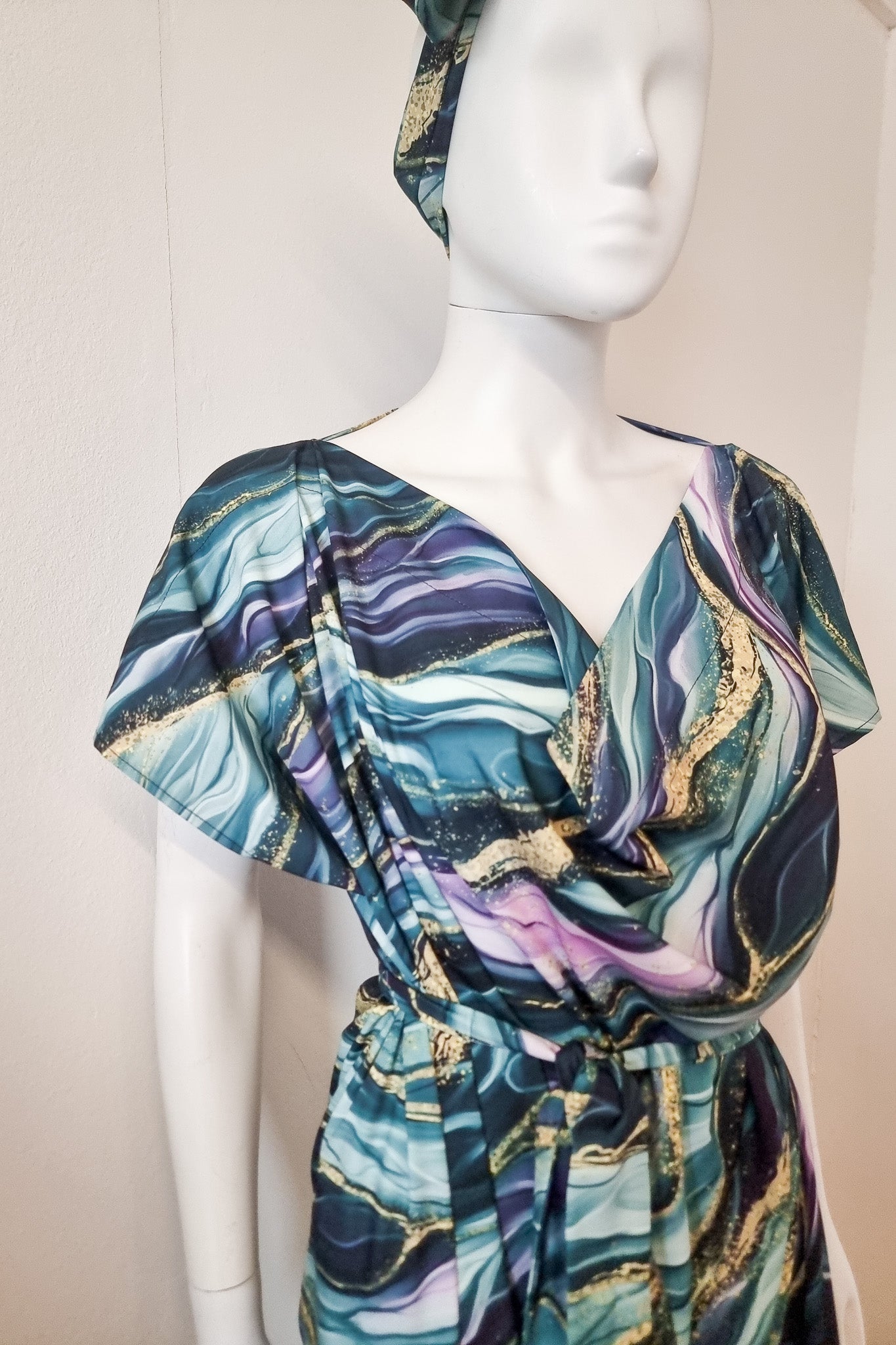 This striking multi-coloured marble print truly comes to life once made up—it shimmers and shifts with every movement.